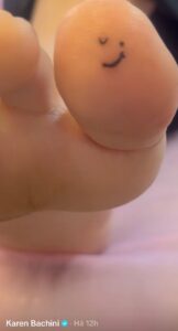 “Oh, bonitinho. Quero uma fotinha. Foi uma experiência única, amei tá?. Sabia que você tem uma honra, de ser a primeira pessoa, e talvez a única, que vai ter me tatuado“. Finalizou feliz a empresária com a sua tatuagem filha única no dedão do pé.