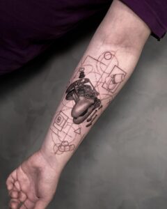 Julian explica que sempre foi apaixonado por Geometria e também realismo. No início da carreira na tatuagem se inspirava em tatuadores que nem sempre uniam as duas coisas, e assim foi desenvolvendo seu próprio estilo, que digamos de passagem por este que vos escreve, são difíceis pra caraca! Tem como admiração o tatuador Anil Gupta, conhecido por fazer tattoos hiper complexas usando as agulhas mais finas do Oeste!