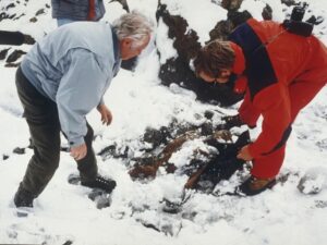 Ötzi foi finalmente tirado do gelo no dia 23 de Setembro. Ainda sem nenhuma equipe de arqueólogos no local, só existiam uma equipe de filmagem pra gravar tudo, e o Homem de Gelo foi tirado do chão com picadores de gelo. Meu pai amado! Um membro da Polícia Forense colocou o corpo num saco de cadáver comum.