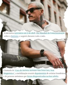 Em breve você verá mais sobre o tema no #CaraDeAutista, movimento que vai dominar as minhas redes no #AbrilAzul.”