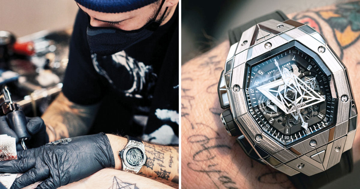 Bora conhecer a fusão de tatuagem com relógios de luxo? Sempre é bom a gente conhecer mais sobre a história da tatuagem e de como muitas pessoas passaram perrengues inimagináveis, pra hoje em dia a profissão de artista e tatuador estar nesse patamar absurdo de marcas de luxo chamarem grandes nomes da cena pra uma colaboração. O Suiço Maxime Plescia-Büchi foi chamado pela Hublot pra fazer uma série de coleções de relógios pra marca.