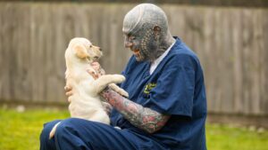 Pessoas com muitas tatuagens, piercings, modificações corporais e barbudões estão sendo chamados pra treinar cães guia que são doados, o motivo? Os cãezinhos geralmente ficam impressionados com os mega tatuados e podem perder a atenção e causa algum acidente. Chegou finalmente o emprego dos sonhos de todo tatuado: treinar cachorrinhos fofos! Uma pesquisa mostrou que dois terços dos cachorros ficam com medo ou confusos quando veem pessoas extremamente modificadas.