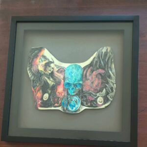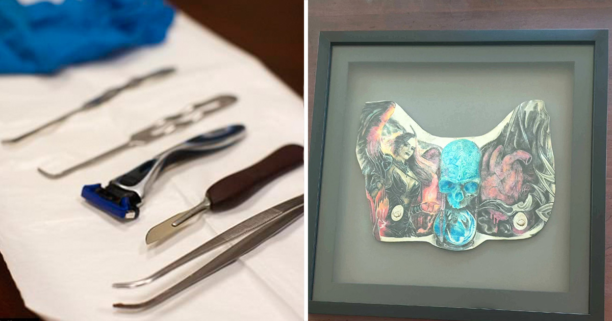 “Quando ele terminou a cirurgia ele nos deu a pele que foi retirada. Nós já tínhamos uma ideia de como manter tecidos preservados. Mas colocar num quadro como se fosse uma arte foi um processo difícil de erros e acertos.”