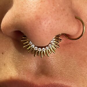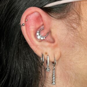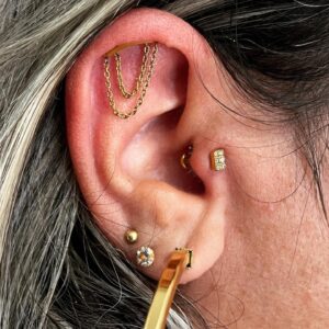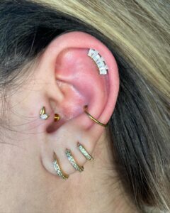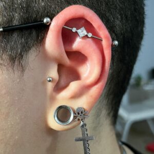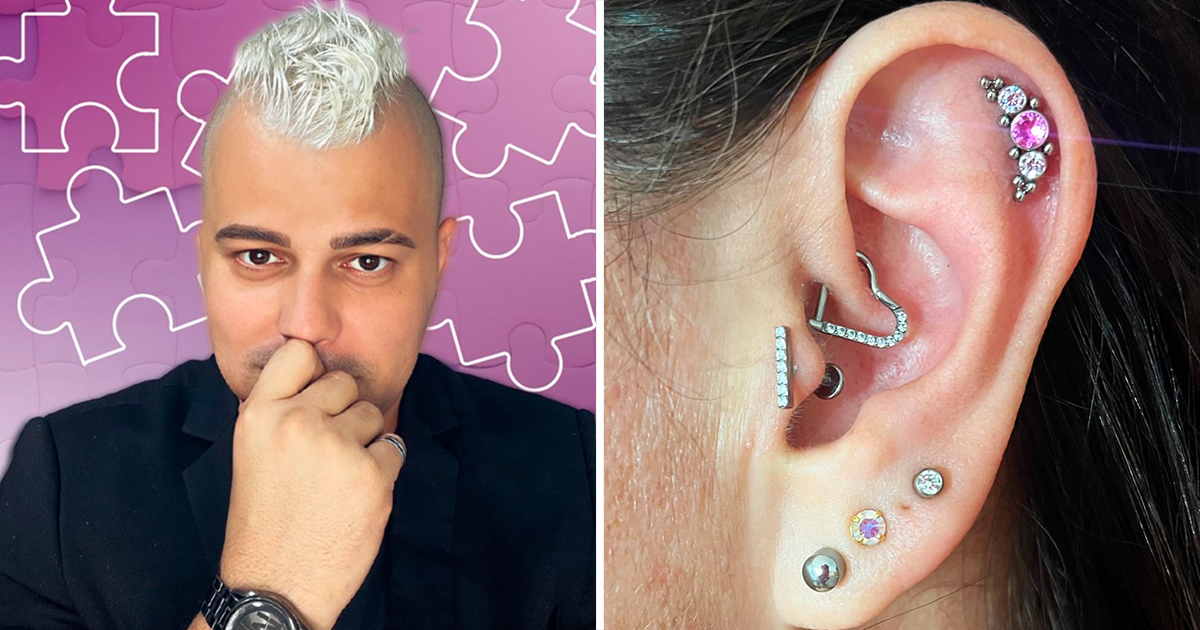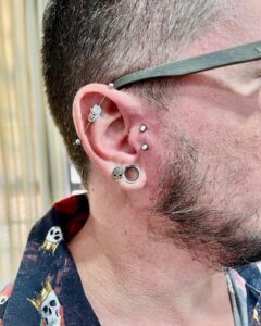 Como vocês puderam ver nas fotos ao longo de toda matéria, Vinícius é um excelente Body Piercer e versátil nas suas aplicações. Ele vai desde o mais simples como os primeiros furos, até os mais complexos como Surface e Micro Dermal. Vini explica que adora fazer projetos de Visagismo auricular pros clientes. Onde ele consegue simular na própria orelha dos clientes através de fotos e edição, como ficariam as perfurações. Dentre as infinitas combinações de perfurações e joias diferentes, existem também os projetos pra quem curte signos! Entra no instagram dele pra ver todos os projetos pras 12 casas do Zodíaco, é muito lindo!